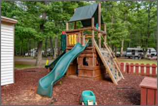 •The Lodge store has light groceries, hard ice cream, ice cream treats, candy, breakfast and snacks, ice, firewood, camping supplies, apparel•Located next to Goodman Township Park (annual fee $10)•The Lodge is open peak season only •Lake Hilbert beach is very nearby•All campsites include water, electric, fire ring, and picnic table•Playground•Direct access to ATV trail system•Arcade•GaGa Ball Pit•Volleyball Court•Tether ball•Flush Toilets•Hot showers•Dump station•WiFi near lodge
